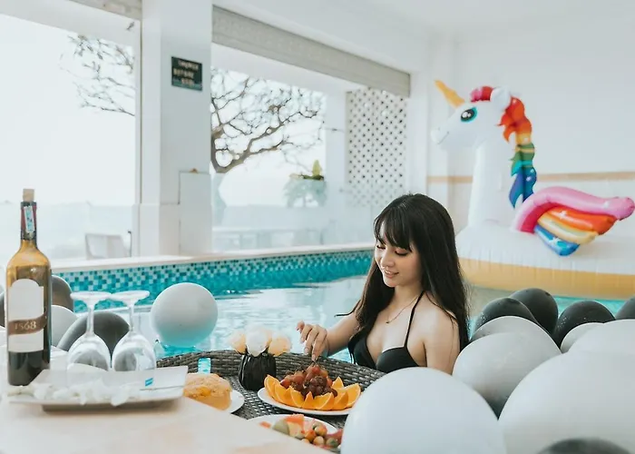 Located in the Mulberry Beach district, the beachfront Sea Villa 69 Tran Phu - Sat Bien Co Bai Tam Rieng provides a plunge pool with a sauna for guests' relaxation. Featuring a plunge pool, a Jacuzzi, and a sauna, this 3-bedroom villa is nestled 4.5 km from Vung Tau Lighthouse.